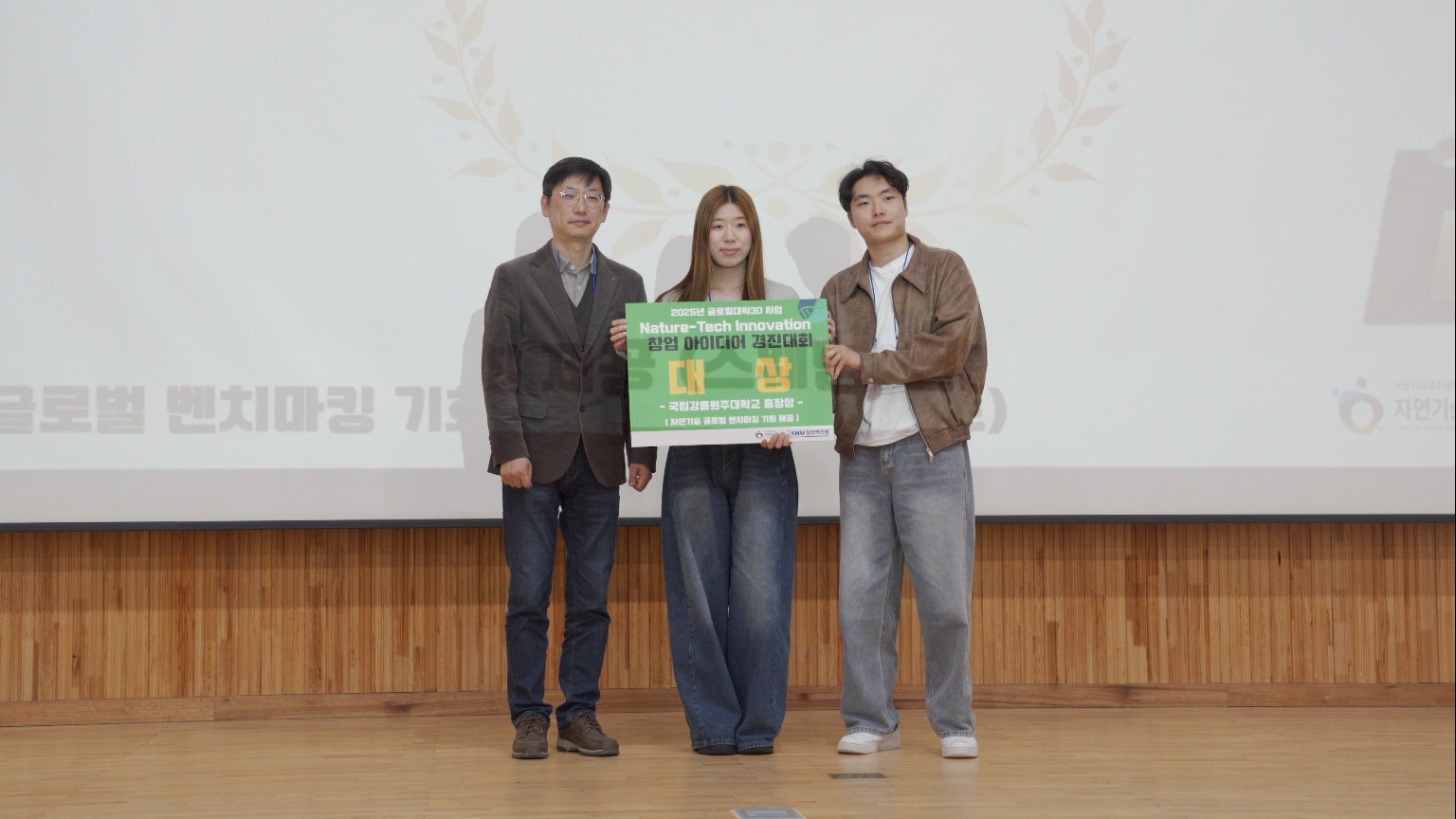 국립강릉원주대-강원대 공동 주관 '제1회 2025년 Nature-Tech Innovation 창업캠프' 에서 정인호, 최서연 학생이 대상(강릉원주대학교 총장상)을 수상하였습니다.
