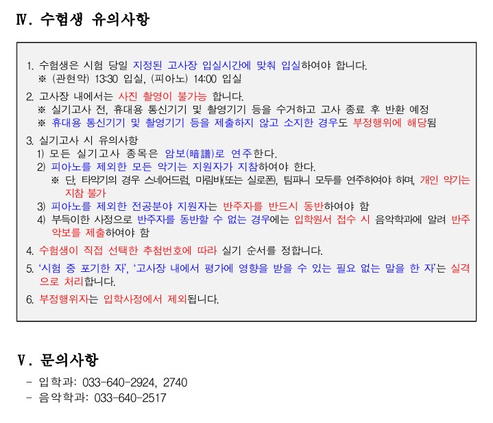 2026학년도 정시모집 음악학과 실기고사 안내(장소 및 유의사항)