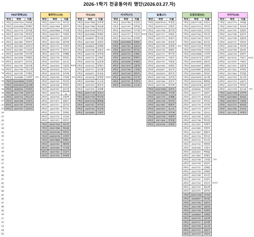 ※ 추가 동아리 신청한 학생은 하단에 음영으로 표기.